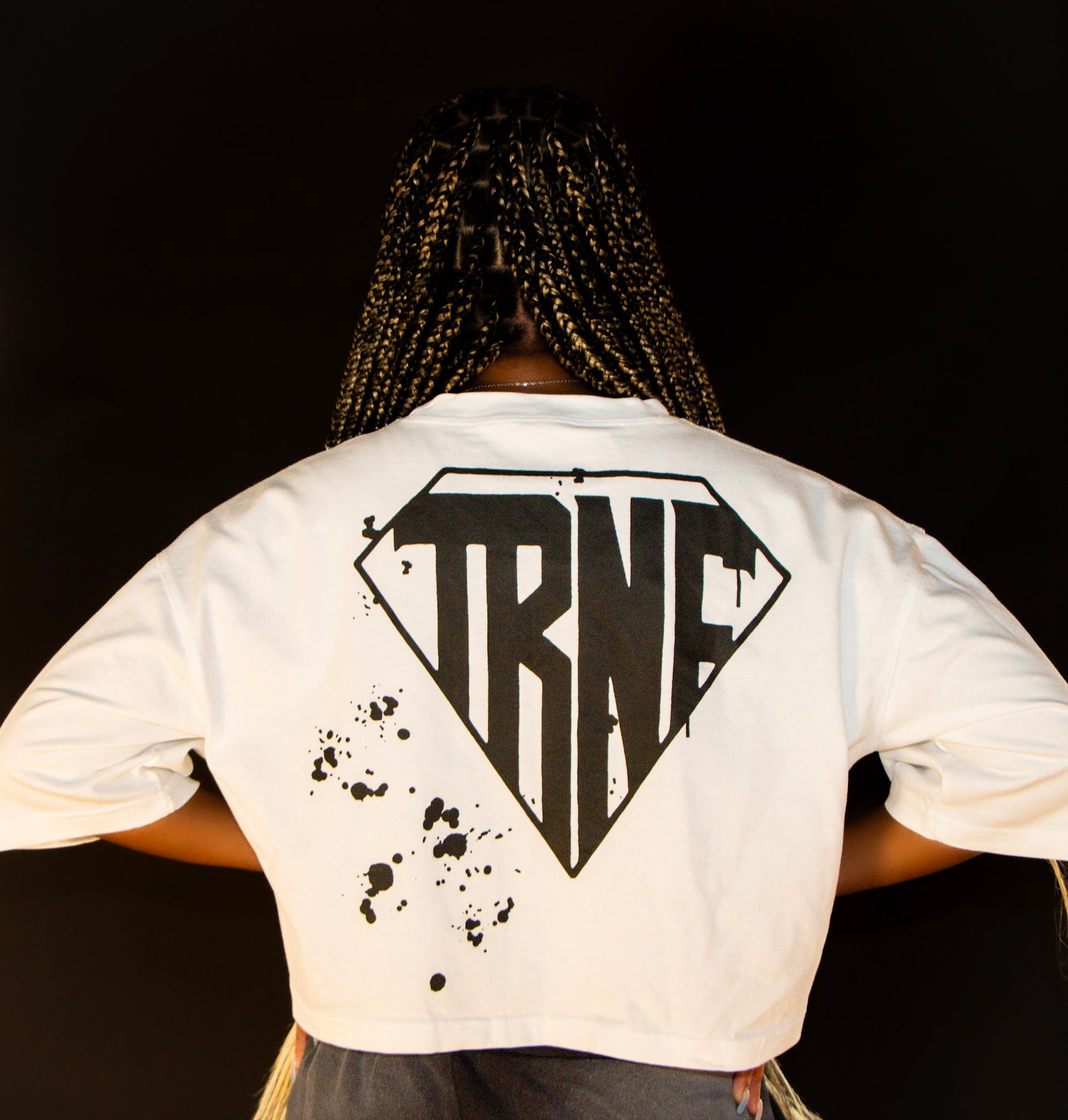 Oversized Cropped Belly Heavyweight Shirt – White / Black